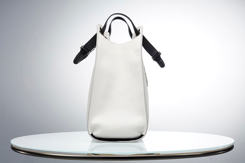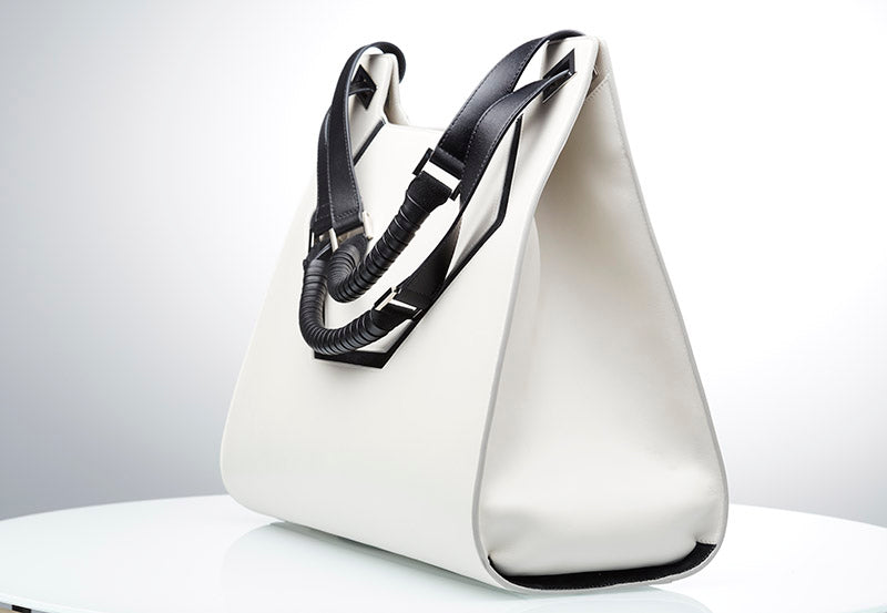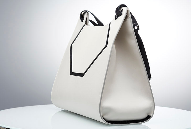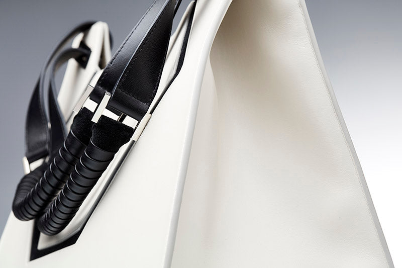 A sculptural, everyday foundation in Warm White with reserved ebony accents, with the volume of a work bag and the polish of an evening piece.
