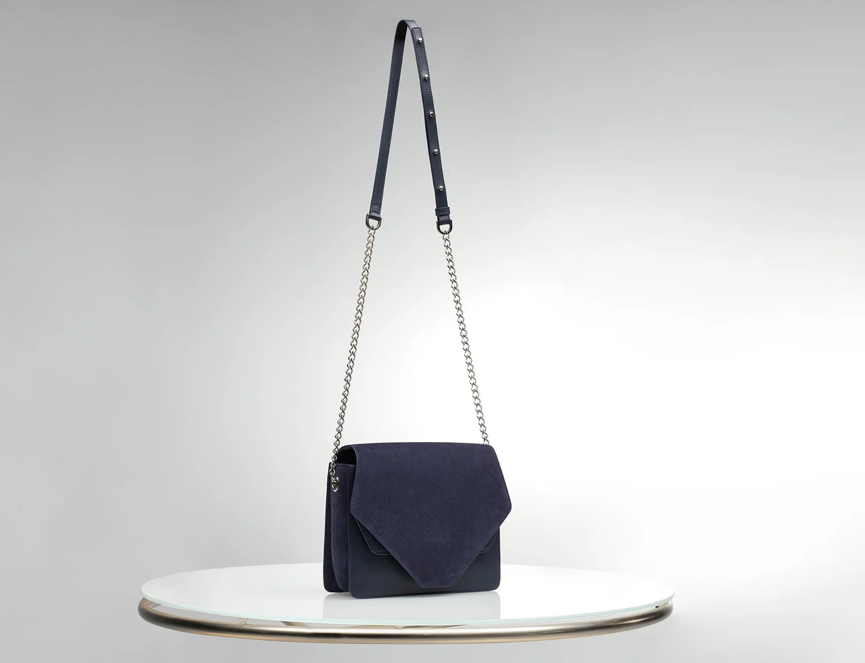 Deliberately scaled, the companion bag carries your immediate essentials with the same precise language of line, texture, and proportion. A deep Midnight Navy that reads as modern and refined in any light, it feels quietly confident against the Nude Alcantara® lining.